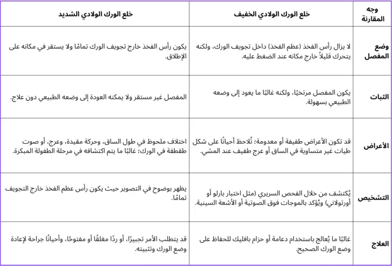 ما الفرق بين خلع الورك الولادي البسيط والشديد عند الأطفال؟